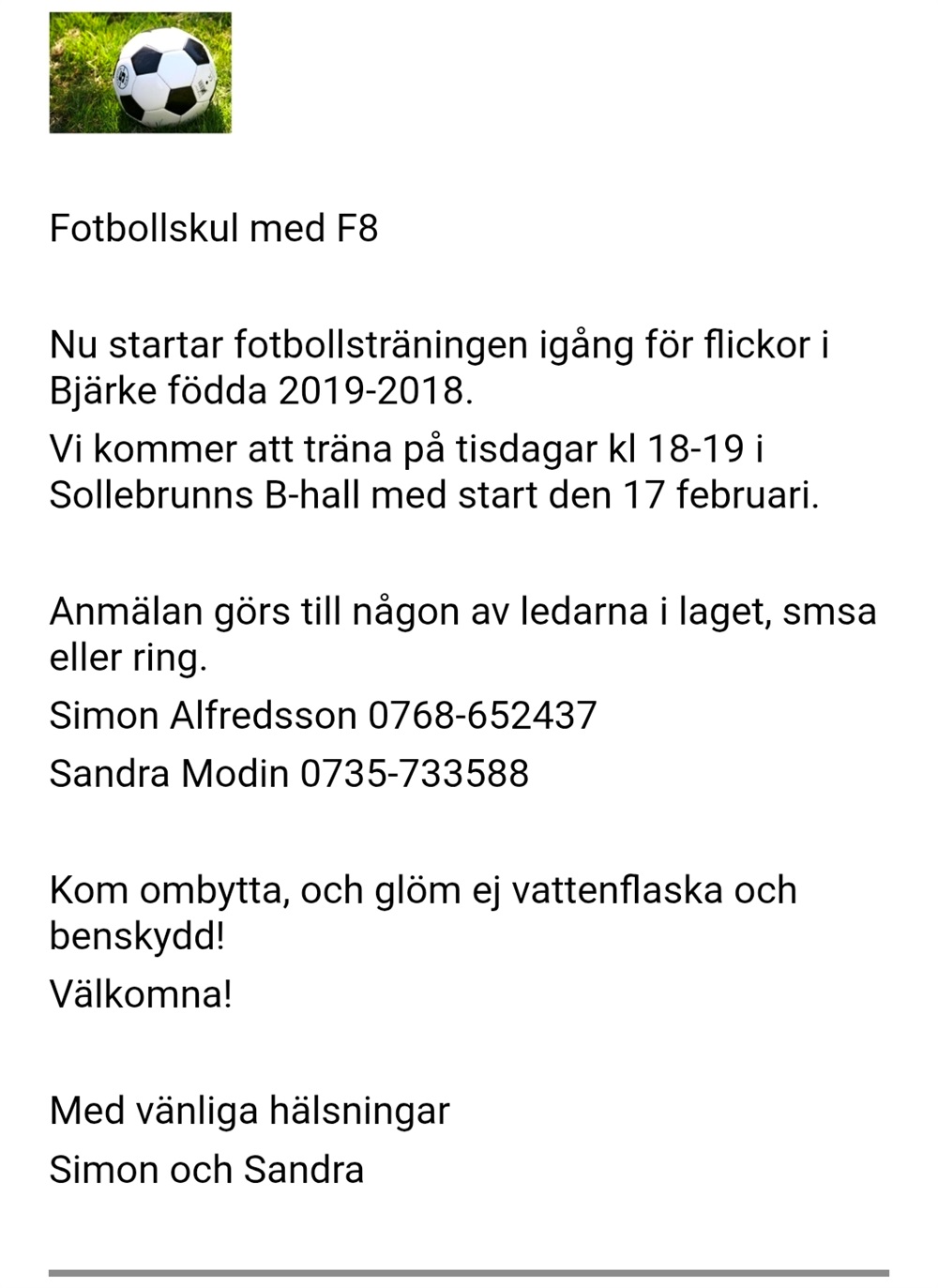 Inbjudan spelarutbildning för spelare födda 2007